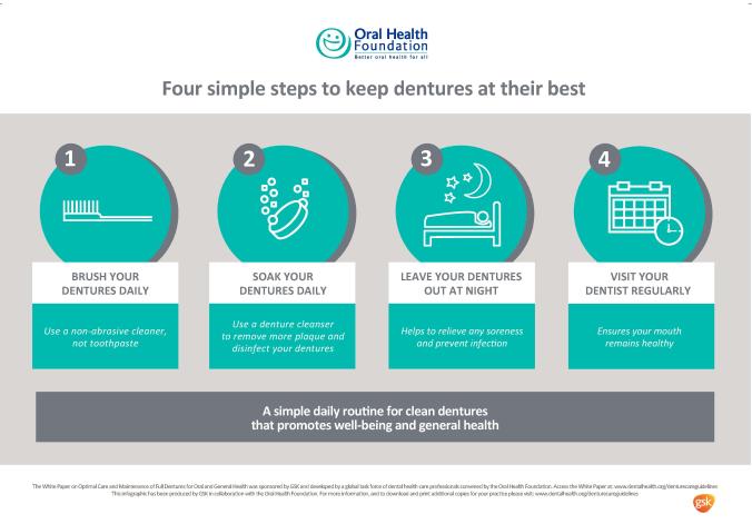 Four key steps to optimal denture care, summarised in the above graphic and available in full here, were concluded: